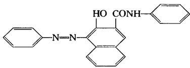 【释文】: 制法 由苯胺经重氮化后与2-羟基-3-萘甲酰基苯胺偶合而得。 性质 鲜艳的红色粉末。分子量367.41。 规格 GB 3675-83