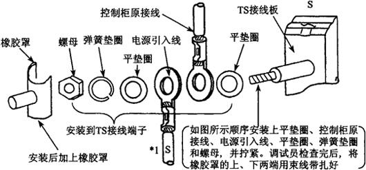连接时,必须保证电源已经断开,然后按照图11.6-1所示进行连接。连接时要确保没有缺少任何垫片。