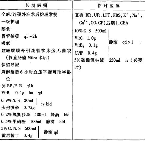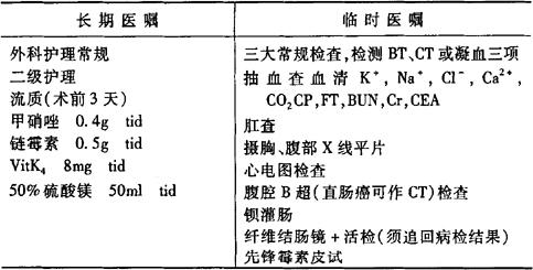 说明:(1)术前肠道准备特别重要,应严格遵守。拟作肠切除、肠吻合者术前应进行肠外营养支持。