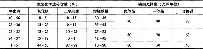 大理石饰面板材在加工和施工过程中,可能由于石材本身或外界因素发生开裂或断裂,在不严重的情况下,板材允许采用专门的胶粘剂进行粘接和修补,但粘接和修补后不得影响板材的装饰质量和物理性能。 (六)物理力学性能 大理石的表观密度一般为2500~2700kg/m3,抗压强度为47~140MPa,弯曲强度不小于7MPa,肖氏硬度为40~50(莫氏硬度为3~4),较花岗岩易于切割、雕琢、磨光成天然大理石板材。大理石的干燥压缩强度不小于20.0MPa,弯曲强度不小于7.0MPa。 大理石板材镜面光泽度要求板材的抛光面应具有良好的镜面光泽,能清晰地反映出景物;生产厂家应按板材中化学主要成分的不同控制板材镜面光泽度,其数值不得低于表15-7中的规定。 表15-7 大理石板材镜面光泽度要求