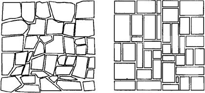 大理石的颜色与其组成成分有关,白色含碳酸钙和碳酸镁,紫色含锰,黄色含铬化物,红褐色、紫红色、棕黄色含锰及氧化铁水化物。许多大理石都是由多种化学成分混杂而成,因此大理石的颜色变化多端,纹理错综复杂、深浅不一,光泽度差异很大。质地纯正的大理石为白色,我国俗称为汉白玉,这是我国大理石中的珍品。大理石因含矿物种类不同而具有不同色彩(如灰色、绿色、黑色、玖瑰色等)和花纹,磨光后非常美观,是室内高级装饰材料,也可供艺术雕刻之用。但由于多数大理石的主要化学成分为碳酸钙或碳酸镁等碱性物质,易被酸类侵蚀,因此除个别品种(如汉白玉、艾叶青等)外,一般不宜用于室外装修。 (二)天然大理石的用途 天然大理石可制成高级装饰工程的饰面板,用于宾馆、展览馆、影剧院、商场、图书馆、机场、车站等公共建筑工程的室内墙面、柱面、栏杆、地面、窗台板、服务台、电梯间门脸的饰面等,是非常理想的室内高级装饰材料。此外,还可以用于制作大理石壁画、工艺品、生活用品等。 用大理石的边角碎料做成“碎拼大理石”墙面或地面,格调优美,乱中有序,别有风韵。大理石边角余料可加工成规则的正方形、长方形,也可不经锯割而呈不规则的毛边碎料。碎拼大理石可用来点缀高级建筑的庭院、走廊等部位,为建筑物增添色彩。碎拼大理石示例如图15-1所示。