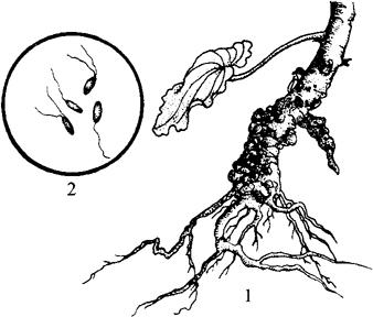 图7-27 天竺葵根癌病 1.症状 2.病原细菌 【病原】 为Agrobacterium tumefaciens(Smith et Towns)Conn。病原细菌短杆状,大小1.2~3.0微米×0.4~0.8微米,发育温度范围为10~34℃。14~30℃发育良好,最适温度为22℃,DH5.7~9.2,以pH7.3为最合适。 【发病规律】 根癌细菌主要存活在癌的表层或土壤中。在土中存活时间,因土中寄主残体有否而定。有时可存活几个月甚至1年以上。但在2年内若遇不到侵染寄主,病菌失去活力。病菌主要靠雨水传播,通过机械伤、虫伤等伤口侵入寄主组织。植株在土表根颈处,较易遭受侵染。病菌侵入后开始在皮层组织内繁殖,刺激附近细胞,加快分裂,并逐渐形成肿瘤,且在远离入侵处的地方也可产生瘤。通常湿度大的土壤发病率较高,微碱性和疏松的土壤有助于病害的发生,而酸性、粘重的土壤则不利病害的发生。 【防治方法】 (1)定植前发现病株拔除。必要时对苗木茎基处进行消毒,先用1%硫酸铜浸5分钟再移到2%石灰水中浸1分钟。 (2)选择无根癌病的土作为苗圃土和盆土。盆栽植株发病应换用无病土。 (3)初发病的病株,用刀切除病癌,再用石硫合剂渣滓或波尔多浆涂抹伤口,或用甲冰碘液(甲醇50份、冰醋酸25份、碘片12份)涂瘤,能治好患处。国外报道,用青霉素、链霉素、金霉素、土霉素液注射病株,也有治疗作用。 (4)适当增施硫酸铵等酸性肥料,以调节土壤酸碱度,使其不利病害发生。 (5)治虫防病,避免产生各种伤口,防止病菌侵染。 |