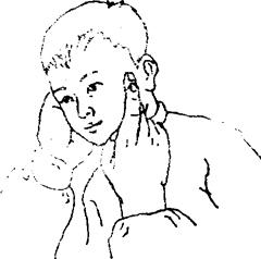 图4-6 揉太阳 〔次数〕30-50次。 〔作用〕解表、清热、明目止头痛。 〔主治〕发热、头痛、惊风、目赤痛。 〔临床应用〕推太阳主要用于外感发热。若外感表实头痛用泻法;若外感表虚,内伤头痛用补法。 |
