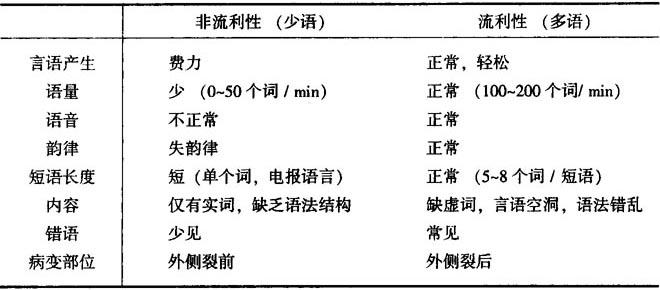 ②语音障碍发音、发声器官虽然没有障碍,但说出的声音与想说的不完全一样,轻的只表现言语的含糊不清,重的会影响音位,还有的影响音调和韵律,如北京口音听起来像广东口音。 ③找词困难与呼名障碍 指在一定言语活动过程中,产生恰当的词困难或不能,即不能够自由想起词,表现为言语表达中所用的词输出受阻或找词的时间延长。在呼名测查中,这种对物体、动作等称呼能力的困难叫做呼名障碍。找词困难是失语症病人的核心症状,几乎所有类型失语症病人均有不同程度的障碍。Benson对呼名障碍进行了仔细的研究,并根据其表现及病变部位分为词产生性呼名障碍、词选择性呼名障碍、语义性呼名障碍、特殊模式呼名障碍和特殊词类呼名障碍五类。 ④复述障碍 即病人不能完整无误地重复所呈现的语音。口语表述、听输入及记忆广度等不同环节均可影响复述过程。复述是评价失语综合征的一个诊断性特征。复述能力保留是各类经皮质性失语综合征的特征表现,是与外侧裂周失语综合征鉴别的重要指标。 ⑤错语、新语、无意义杂乱语及刻板言语 错语是指表述中出现语音或语义错误的词替代;新语指的是用无意义的词或新创造出的词代替说不出的词;无意义杂乱语是指病人说的是一串意义完全不明了的音或单词的堆砌;刻板言语则指表达中无意义的持续重复同样的词、词组或句子。 ⑥语法障碍 即组成正确句型困难的状态,表现为失语法症或语法错乱。失语法症常表现为表达的句子中缺乏语法功能词,典型的表现为电报式语言。语法错乱则表现为助词错用或词语位置顺序不合乎语法规则。 (2)听理解障碍 指病人可听到声音,但对语义的理解不能或不完全。其中,有些病人可分为语义理解障碍和语音认知障碍。国外学者Benson把理解障碍从临床上分为接收障碍、听觉障碍、语义障碍和句法障碍四类。听理解障碍通常在检查内容冗长、熟悉程度低以及句子长而复杂时加重。病人表现为执行比较长的指令及复述比较长的句子时错误明显增加,对口语材料的短时回忆能力下降,非口语性提示使理解明显改善提高等特点。如果病人听理解正常,他的其他言语症状通常也比较轻微。 (3)阅读障碍 包括读音障碍和阅读理解障碍。前者指病人朗读时读音错误;后者者指病人不能理解所看到的字词或句子。两种障碍可同时存在,也可出现分离性障碍。拼音文字还包括拼读障碍。严重读理解障碍病人字母或单词匹配的能力也受损,但在复杂命令和段落水平的阅读材料检查中,有时仅表现轻微障碍。失读症有不同的分类,如按病变部位可分为三类:①枕叶失读,即纯失读或失读不伴失写;②顶叶失读,即失读伴失写;③额叶失读,即保留对实义词的理解,但不理解语法词及有语法结构的句子。依认知神经心理学的观点,根据朗读规则词及非规则词,区别非词及读理解能力,将失读归为三类:①深层失读;②语音性失读;③浅层失读。 (4)书写障碍 指大脑损伤所致非瘫痪性的书写能力受损或丧失。书写通常是受累最重的语言模式。病人常常出现词汇、语义和语法方面的错误,通常与口语中出现的一致。有时病人可能写出完全不能辨认的严重构字障碍的词。我国王新德教授将失写症分为:①完全性书写障碍;②构字障碍;③书写惰性现象;④象形写字;⑤写字过多;⑥镜像写字。Benson将失写症分为三类:①左额叶失写;②左颞叶失写;③非优势半球失写。 (5)常见失语综合征的言语行为表现及伴随症状 ①Broca失语 亦称前部失语、非流利性失语、运动性失语、传出性失语、表达性失语或皮层性运动性失语。这类失语病人的表述费力,找词困难明显,属非流利性,典型的呈电报式语言;病人对于自己不能表达非常重视,出现错误时常表现不同程度的沮丧。有相对完整的听理解。复述、呼名呈中等程度障碍,易接受语音提示。阅读时读音障碍,理解较好。有轻度的书写障碍。Broca失语病人常伴偏瘫,有时伴偏身感觉障碍,无视野缺损。 ②Wernicke失语 亦称后部失语、接收性失语、感受性失语、听性失语、句法性失语。这类失语属流利型失语,病人的言语特点表现为听及阅读理解障碍突出,缺乏实词,内容空洞,语法错乱,表述及呼名时发音较好,但错语、新语多,甚至出现无意义杂乱语;复述严重障碍,书写也不正常。Wemicke失语病人无偏瘫,但可能有感觉障碍和(或)视野缺损。 ③传导性失语 亦称传入-运动性失语或中央型失语。与病人的口语表达和听理解相比,复述障碍更为严重是这一类失语综合征的特征。病人的表述虽然属于流利型,但言语中间有长的停顿及由于找词困难造成的表述费力,语音错误较多。听理解有轻度障碍,读理解相对完整。书写有障碍。传导性失语病人多无偏瘫,可以伴有感觉障碍和视野缺损。 ④命名性失语 亦称语义性失语、名词性失语或遗忘性失语。呼名障碍和找词困难是失语症特征性的表现。各类失语症均有此症状,故最无定位价值。而命名性失语是指以呼名障碍为几乎惟一表现的失语综合征,此类失语是一种较轻类型的流利型失语。口语表达及书写因找词困难(特别是实词),显得空洞、累赘,语法结构较为完整,复述是正常的。命名性失语病人多不伴有偏瘫、偏身感觉障碍及偏盲。 ⑤经皮质性运动性失语 言语行为表现类似于Broca失语,属非流利型,复述好是与其不同的一个重要特