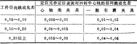 3)车、磨床夹具径向跳动允差(表14-34) 表14-34 车、磨床夹具径向跳动允整