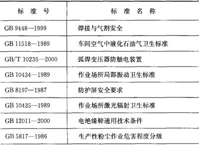 | 释义 | 安全技术 从事焊接与切割的技术人员作为特殊工种,国家为了保护操作人员的安全与健康,特颁布了相关的规范和标准,分别见表10-1、表10-2。并规定从事焊接与切割的人员必须经过安全教育,接受专业理论和实际训练,经考试合格持有证书方可上岗。 表10-1 有关焊接安全的主要规程和规范