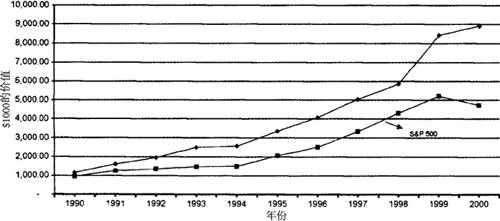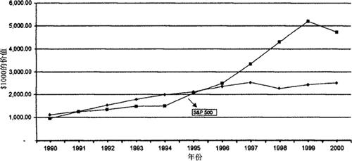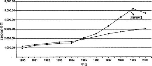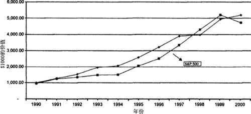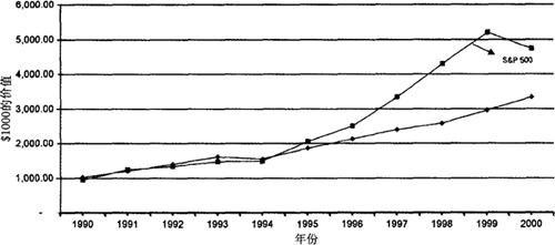 图25.1 HFRI股票多空指数 全球宏观对冲基金 正如其名称隐含的那样,全球宏观对冲基金在其投资策略中采用以全球为基础的宏观经济方法。这些是采用自上而下方法的经理,他们机会主义地投资于不同的金融市场、货币、国家和商品。对冲基金经理根据其对利率变化、汇率走向、货币政策和宏观经济指标的预测建立大额头寸。 全球宏观经理的投资范围最为广泛。他们不受市场领域或行业领域的限制,也不受地区、金融市场或货币的限制。此外,全球宏观经理还可投资于商品。事实上,全球宏观对冲基金之基金提供了最大程度的投资策略多元化。 全球宏观基金通常拥有规模庞大的投资者资本。这对其宏观经济策略的实施是必需的。此外,他们还可应用杠杆以加大其宏观投赌的规模。因此,全球宏观对冲基金在金融市场中通常最为受到关注和公开报导。 在这些对冲基金中最着名的是乔治·索罗斯管理的量子对冲基金。根据大量文献的记载,该基金于1992年通过对英镑的贬值进行投赌(它确实发生了贬值)赚取了高额收益。该基金还被指责导致了1997年秋季的“亚洲金融风暴”。当时,泰国政府降低了其货币(铢)的汇率,从而引发了整个东南亚的汇率变动的多米诺效应。 然而最近,全球宏观基金陷入了低潮。(4)其中一个原因是:1998年俄国债券的违约和2000年3月科技股泡沫的破灭使许多全球宏观基金受到了重创。这两个事件导致了全球宏观基金的高额损失。 正如以上指出的那样,第二个原因是:全球宏观对冲基金拥有在所有对冲基金策略中范围最广的投资权限。广泛投资于不同货币、金融市场、地区和商品的能力是一把双刃剑。一方面,它使全球宏观基金能够在最广的投资范围内实施其策略。另一方面,它缺乏重点。随着进入对冲基金市场的机构投资者的增加,它们要求更突出的投资重点,而不是自由投资。 图25.2提供了1990-2000年期间的全球宏观对冲基金与S&P500的比较。在这段时期内,全球宏观对冲基金赚取了更高的收益率。