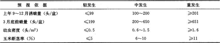 4.2 小地老虎发生量预报指标模式(表3-47) 表3-47 小地老虎发生量预报指标模式表