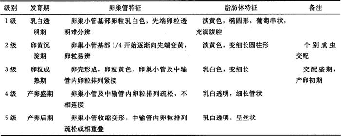 注:江苏,泗洪 4.3 小地老虎雌蛾卵巢发育分级指标 小地老虎雌蛾卵巢发育分级指标(细化)