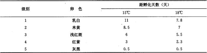 4.4 小地老虎卵分级与距孵化天数 小地老虎卵分级与距孵化天数统计