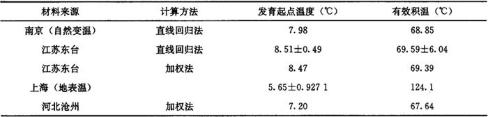 4.6 小地老虎卵发育起点温度和有效积温 小地老虎卵发育起点温度和有效积温统计