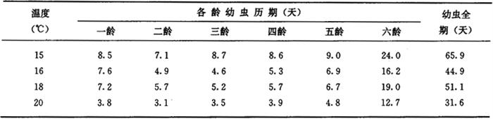 4.7 小地老虎各龄幼虫历期 小地老虎不同温度下各龄幼虫历期统计 (南京,恒温)