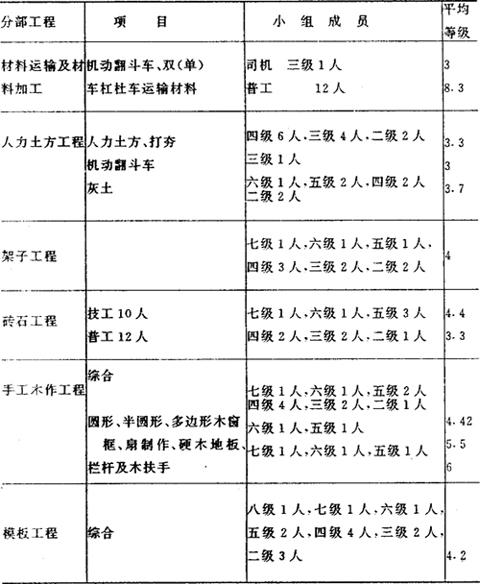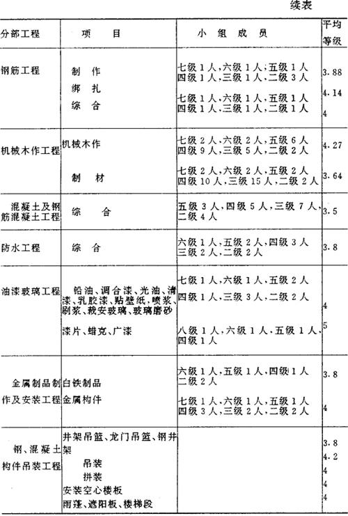 根据《全国建筑安装工程统一劳动定额》,对各项工程分别制定了平均等级(见表3-2)。
