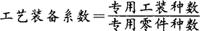 简称工装系数,是反映专用工艺装备的配备水平的数值。它是用来控制专用工装数量、确定工装设计与制造的工作量、安排准备计划的一个重要依据。它可用下式计算: