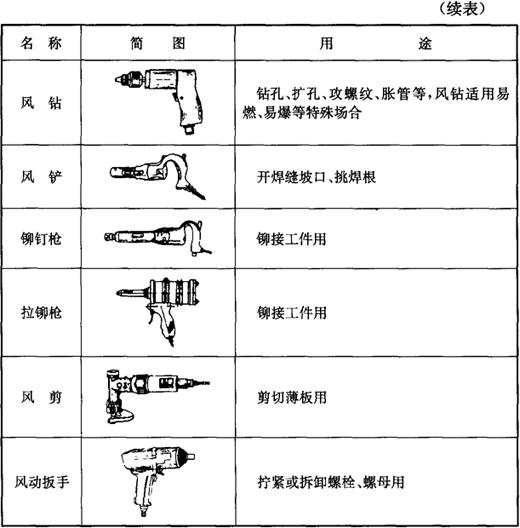 风动工具包括风砂轮、风钻、风剪和拉铆枪等,见表5-4。 表5-4 风动工具