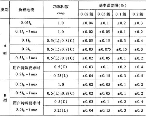 注:Ib-基本电流,即确定电能表有关特性的电流值; L-代表感性负载; C-代表容性负载; Imax-额定最大电流; A型表与B型表的区别是B型表无轻载时的基本误差要求。 表7-12 不平衡负载时三相标准电能表的基本误差限