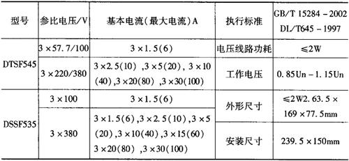 (5)晶控时间开关:包括用日显示器的数字器件显示时间的数显钟和用日标度盘显示时间的度盘钟。时间开关应有方便地检测日计时误差(时基频率)和时段投切误差的检测部位。 (6)控制电路:感应系脉冲电能表和数显钟组成的分时计度电能表,其控制电路应符合下列要求。 ①有负载功率时,转数变换电路应输出与电能表转数成正比的脉冲数,正确驱动峰(谷)计度器计数。为此,应有方便地检测脉冲数的检测部位。具有反向功率判别器的分时计度电能表,其转盘在360°以内来回转动时应不输出脉冲。 ②无负载电流时,峰(谷)计度器应不计数(受电压影响,在1转内潜动时例外)。 (7)电源电压: ①当电源电压在80%~115%额定工作电压范围变化时,晶控时间开关和驱动峰(谷)计度器的继电器或静态开关器件及控制电路,应正常运行。 继电器或静态开关器件,当其承受的电压低到35%额定工作电压时,应能随即返回。 ②电源电压中断后,在由电池提供的工作储备期间(工作储备应不少于720h)和电源电压恢复正常时,晶控时间开关和控制电路功能均应保持正常。 (8)工频耐压:在室温和空气相对湿度为80%(对A1组和B1组电能表)或95%(对A组和B组电能表)以下,整体式和分离式分时计度电能表,应能承受频率为50(60)Hz的实际正弦波交流电压(有效值)历时1min的试验。 ①电压、电流线路和交流电源线路对金属或绝缘材料外壳间的试验电压为2kV,工作电压不高于40V的线路对外壳问的试验电压为500V。 ②电压线路与电流线路间、不同相别的电流线路间的试验电压为600V。 4.DTSF545/DSSF535(B)三相多费率电能表 DTSF545/DSSF535(B)三相电子式多功能电能表是为了适应我国电网改造,根据国情而设计开发的有功多费率电能表。它具有较高的准确度和可靠性,为有功1级、无功2级。 (1)基本功能 ①复费率功能:具有四种费率、二个时区分时计量功能,每个时区可设八个时段; ②电能计量功能:分时计量有功正向及反向有功电能,可记录十二个月的有功总电量和分时电量,并可通过红外或485方式抄出; ③需量计量功能:实现有功正、反向4费率需量和总需量计算; ④其他功能:具有停电显示抄表; ⑤大屏幕汉化LCD显示各种参数设置情况和测量数据; ⑥通讯接口:具有红外和RS-485通讯功能,适应DL/T645-1997《多功能电能表通讯约》。RS-485采用抗雷击485芯片。 (2)扩展功能有三点:停电红外抄表功能;液晶背光显示功能;时钟温度补偿功能。 (3)技术指标及规格如表7-18所示。 表7-18 三相电子式多功能电能表的规格和技术参数
