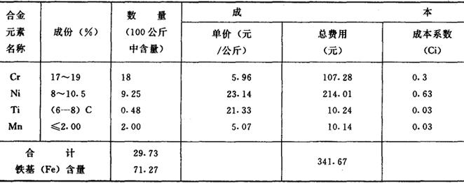 表3 1Cr18Ni9Ti成本系数确定