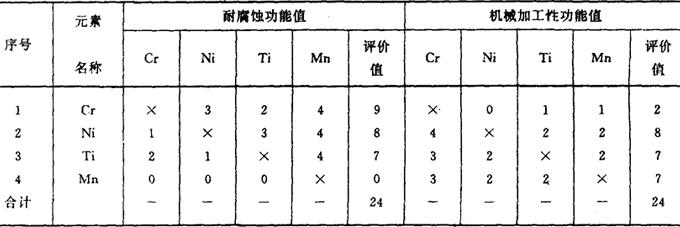 表4 1Cr18Ni9Ti功能重要性评价(“04”打分)