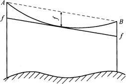 图15-11 平视法弛度放样 求得HD后,即可按下述方法进行操作: 1)根据自己的身高确定一个恰当的仪高i,计算仪器安置点的应有高程:HK=HD-i。 2)从A端或B端地面起,沿AB导线方向进行水准测量,用前尺找出高程等于HK的地面点K。 3)在K点安置水准仪,使整平后的仪高等于i,然后朝着导线方向观测,当导线落到与中丝相切时,便得到应放样的弛度f。 另外,对于弛度的放样工作可采用全站仪的悬高测量功能实现。 |