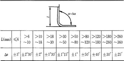 表1.2-47 弯曲件角度的自由公差