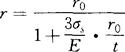 图1.2-33 回弹引起的弯曲角和弯曲半径变化 回弹值包括弯曲半径回弹值△r和弯曲角回弹值△α △r=r0-r △α=α0-α 式中 r0、α0——回弹后的弯曲半径(mm)、弯曲角(°); r、α——凸模半径(mm)、凸模的弯曲角(°)。 ①相对弯曲半径r/t较小(r/t<10)的工件。由于