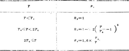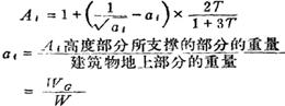 图3-144 示意图 地震力度计算公式如下: FG=Ci×WG 式中 FG——地震力度; Ci——地震力度剪切系数; WG——计算地震力度部分支撑的重量 (固定重+荷载重+积雪重) Ci=Z·Ri·At·Co 式中 Z——根据地点确定的常数,1.0~0.7(多为1.0); Ri——建筑物振动特性; Ai——表示地震层剪切系数的建筑物高度方向分布数值; Co——标准剪切系数0.2以上,地面不坚固的场所0.3以上。 求Rt时,用下式: T=h(0.02+0.01×a) 式中 T——建筑物固有的周期(s); h——建筑物高度(m); Tc——根据建筑物地基的地质类型确定的数值(s),0.4为岩石、硬质砂土;0.8为腐质土、泥土。 求Ai时,用下式:
