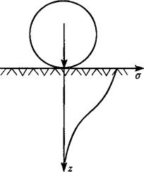 (四)铺土厚度影响 土体在压实功能的作用下,其应力随着深度的增加而逐渐减小,如图1-66所示。其影响深度与压实机械、土的性质和含水量等有关。铺土厚度应小于压实机械压土时的作用深度,但最重要的还有最优土层厚度的问题。如果填土铺筑过厚,可能最底层不能压实,也可能要压很多遍才能达到规定的密实度;如果填土铺筑过薄,不仅造成压实功的浪费,而且还会造成土体剪切破坏。最优的铺土厚度应能使土方压实度符合设计要求而机械的功耗最少。