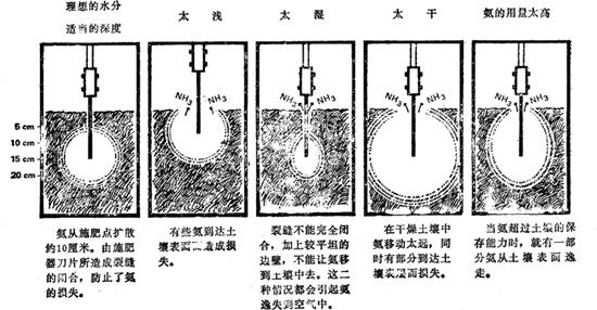 图17.2 氨的位置 (引自:现代玉米生产-A1dich & Leng) 2.质地 土壤吸持氨的能力与质地密切相关。质地较细的土壤,吸持氨的能力比较强,这是因为细质(粘质)土壤,单位体积内吸附作用位置和反应位置(胶体)较多,又因为土壤孔隙较小,气体较少透过。 相反,质地粗(砂性)的土壤,吸持的氨比较少。因为氨容易移动,保留区域较大,施用时损失可能也多。 质地的影响主要是由于每单位土壤质量的表面积的不同。土壤的其它性质能容易掩盖质地的影响,如土壤矿物质和有机质的类型与数量、含水量、施用深度以及这些因素之间的相互作,在很大程用度上决定了土壤吸持氨的能力。 3.结构与耕性 这二者关系到土壤的物理性状,还涉及到耕作层和苗床的团聚作用与土块的大小。结构和耕性很大程度上受质地和有机物质的影响。 这些性质对于氨的施用和吸持有所影响。氨释放的区域应该比较潮湿(壤土的水分含量一般为15%)、松散和碎泥块多。耕作层的底部应当疏松,施肥器上的刀片容易穿过,而且底部松散、碎泥块多和少量的水分,可使氨顺利地从它的释放点扩散出去,有助于迅速和充分的吸附。 如果泥块较碎,土壤就会有较多的可以让氨进入的孔隙,容纳氨气,直至化学吸附为止。 耕作层上部的泥土应是疏松干燥的细土,以保证注射裂缝迅速而又完全地密封。 应当指出的是,在新南威尔士州液氨大部分用到灌溉地区,这些地方的耕作层底部至少要20厘米深,最好超过30厘米。 4.阳离子代换量 虽然氨的吸持与阳离子代换量的相关性并不高,但对氨的吸持起着重要作用。 硝化作用和植物利用氨的各种反应都发生在阳离子代换复合体上。随着pH的升高,阳离子代换量也就显着的增加。在高pH下,这方面的作用有机胶体比粘粒胶体更重要。 5.土壤pH 土壤与氨进行化学作用的能力,主要同土壤粘粒和有机质含量有关。在酸性土壤中,大量的氨吸附在粘土矿物上;在碱性土壤中,土壤有机质对于氨的化学吸附更为有效。这二种组成物质在较宽的土壤pH范围内,起到吸持氨的作用。 假如其它施用条件都满足,那么pH本身对于吸持氨的作用则是次要的。 |