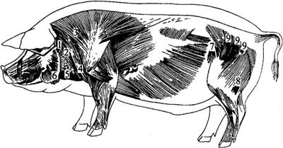 图1-14 猪体表淋巴结的位置 1.腮淋巴结 2.咽后外侧淋巴结 3.颈浅背侧(肩前)淋巴结 4.颈浅腹侧淋巴结 5.下颌副淋巴结 6.下颌淋巴结 7.膝上(股前)淋巴结 8.腘淋巴结 9.荐外侧淋巴结 脾脏位于胃的左侧,能制造淋巴细胞和单核细胞,破坏、吞噬衰老的血细胞,贮存血液,参与机体免疫。 胸腺位于颈胸部,性成熟时发育最完全,此后逐渐退化。它产生胸腺素、促进T淋巴细胞的分化,参与细胞免疫。 (5)淋巴管和淋巴液 组织中的一部分组织液渗入毛细淋巴管便形成淋巴液。它经毛细淋巴管流向集合淋巴管,最后汇合成胸导管或右淋巴导管进入前腔静脉。在流动过程中将多余的组织液和肠壁吸收的营养物质带回心脏。 |