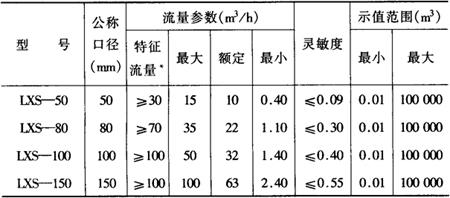 表8-48 LXS型大口径旋翼式水表主要技术参数