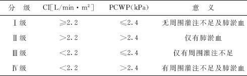 (2)泵衰竭的诊断 1)Forrester泵心衰的诊断:见表1-2。 表1-2 Forrester泵心衰的诊断