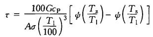 式中 σ——导出辐射系数,W/(m2·℃),当加热温度为900~1300℃时,σ=3.5~4.0;当加热温度≤900℃时,σ=2.9~3.5; Tl——炉温,K,Tl=tl+273; Ts——加热开始时的钢材温度,K,Ts=ts+273; T2——加热终了时的钢材温度,K,Tz=tz+273; φ——函数(见图6-1). “厚型”钢材,加热温度≤1200℃时,加热时间的计算公式为: