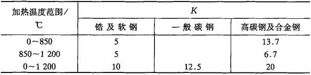 | 释义 | 恒温炉内加热时间的计算 “薄型”钢材,加热温度≤1200℃时,可以按加热炉容许的最大加热速度计算加热时间.计算公式为: