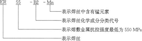 | 释义 | 我国低合金钢焊丝和填充丝标准概述 我国气体保护焊用低合金钢焊丝和填充丝标准共有两个,一是GB/T 8110-1995《气体保护焊用碳钢、低合金钢焊丝》,此标准非等效采用ANSI/AWS A5.28。二是GB/T 14958-1994《气体保护焊用钢丝》,此标准取代GB 1300-1977。 我国国家标准GB/T 8110-1995《气体保护电弧焊用碳钢、低合金钢焊丝》规定了碳钢、低合金钢实心焊丝和填充丝的型号分类、技术要求、试验方法、检验规则及包装等内容,它适用于碳钢、低合金钢熔化极气体保护焊用实心焊丝以及钨极气体保护焊和等离子弧焊用填充丝。 焊丝按化学成分和采用熔化极气体保护焊时熔敷金属的力学性能分类。焊丝型号的表示方法为ER××-×,字母ER表示焊丝,ER后面的两位数字表示熔敷金属的最低抗拉强度,短划“-”后面的字母或数字表示焊丝化学成分分类代号。如还附有其他化学成分时,直接用元素符号表示,并以短划“-”与前面的数字分开,举例如下: