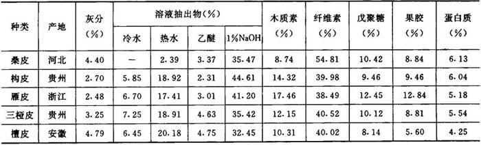 我国造纸常用非木材植物纤维原料的化学成分分析结果