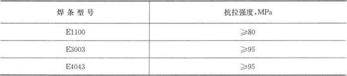 力学性能试验用母材,对E1100型焊条为1100铝合金,对E3003和E4043型焊条为3003铝合金。