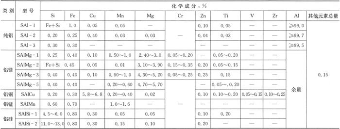 表9.3-2 铝及铝合金焊丝的化学成分(GB/T 10858-1989)
