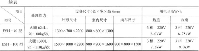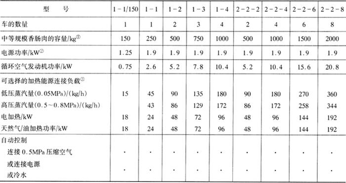 表3-5-11 奥托塞姆蒸汽烟熏室主要技术参数