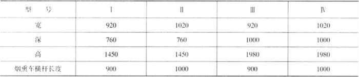 表3-5-10 奥托塞姆标准烟熏车尺寸 单位:mm