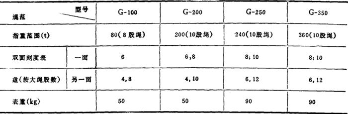 测定应力范围500~18000kg。自动记录仪记录纸,在24h内误差不超过5min。水压系统内压力为0.8MPa。全套指重表重量为50.3kg。读数如表3-2-17所示。