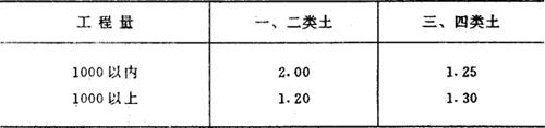 注:(1)挖地坑底面积在20米2以内按挖地坑计算。 (2)按建筑物、构筑物挖地坑部分的外围体积乘上系数,适于概(估)算。 〔计算例〕 某构筑物挖地坑,9×2m,深2m,为三类土质,其外围体积为9×2×2=36m3。则乘上三、四类系数 36×1.25=45m3 |