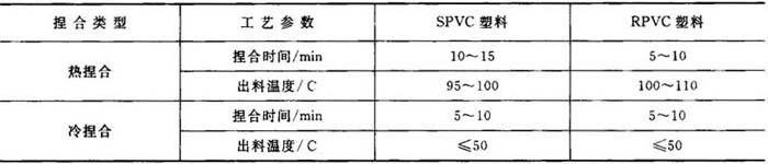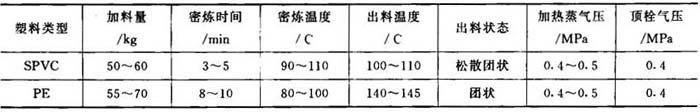 捏合料的质量主要表现为这样几点:(1)呈疏松的团状结构;(2)有较好的弹性;(3)色泽均匀。 (四)密炼 对于SPVC塑料,如果在捏合后造粒前添加密炼工序,则物料的塑化质量会更高,但因物料呈团块状,不易向挤出料斗加料,所以,此工序一般不设。用50L密炼机,对于SPVC塑料和PE塑料的密炼工艺参数见表17-2。 表17-2 50L密炼机对SPVC塑料和PE塑料密炼工艺参数