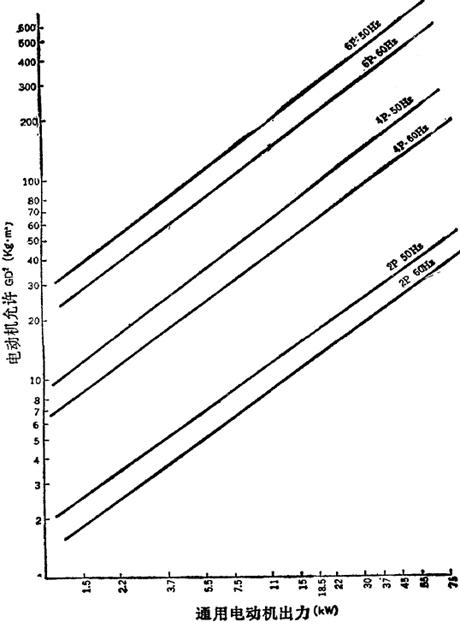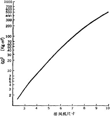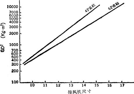 图3-80 排风机尺寸与GD2(b) 注:叶轮外形尺寸=150×排风机尺寸 3.6.15 通用电动机允许的GD2概算 通用电动机允许的GD2概算见图3-81。