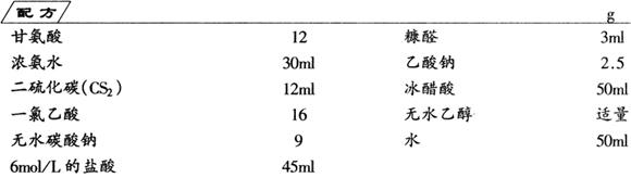 (1)甘氨酸二硫代甲酸铵的合成将12g甘氨酸溶于30ml浓氨水中,再加10ml水微热至清亮,在不断搅拌下加入12ml CS2,产生大量白色沉淀。过滤,干燥,得产物25g。