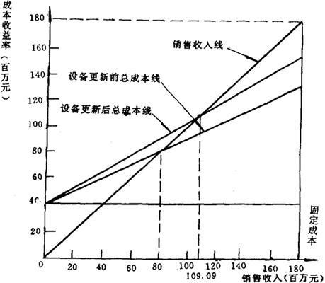 设备更新前后的盈亏平衡分析图 |