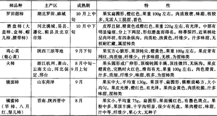 表1-2-15 柿主要品种及其特性
