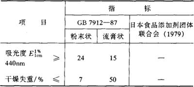 C44H64O24 相对分子质量 977.21 性状 橙黄色膏状或红棕色结晶粉末,微臭,易溶于水,溶于乙醇和丙二醇,不溶于油脂。水溶液呈弱酸性或中性,其色调几乎不受环境pH变化的影响。pH为4.0~6.0或8.0~11.0时,本色素比β-胡萝卜素稳定,特别是偏碱性条件下黄色更鲜艳。中性或偏碱性时,该色素耐光性、耐热性均较好,而偏酸性时较差,易发生褐变。耐金属离子(除铁离子外)较好。铁离子有使其变黑的倾向。耐盐性、耐还原性、耐微生物性均较好。对蛋白质着色力优于淀粉。对两者着色均较稳定。耐微生物性也较好。糖对本品有稳定作用。 制法 将茜草科植物栀子(Gardenia florida L.)的果实去皮、破碎,用水或乙醇水溶液抽提、精制而得膏状物或进一步精制为粉状。 质量标准