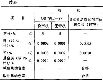 鉴别方法 (1)本品水溶液最大吸收峰波长为440nm。 (2)取0.5g本品,加入2mL浓硫酸,溶液即由深青色慢慢变为紫色,然后变为褐色。 (3)微晶纤维素薄层层析,流动相为异戊醇∶丙酮∶水=5∶6∶5,有两个斑点: 藏花素:Rf=0.6 藏花酸:Rf=0.9 毒理学依据 1.LD50 小鼠口服22g/kg(bw)(日本大阪工业试验所,1947) DL 大鼠(雄性)口服4.64g/kg(bw); 大鼠(雌性)口服3.16g/kg(bw)。 2.蓄积性、致突变试验 有弱蓄积性,无致突变作用。 *引自南京野生植物综合利用研究所报告(1986)。 使用 着色剂。 1.使用注意事项 (1)配制成水溶液使用或直接使用浸膏或粉末。 (2)铁离子能使色素变黑。 (3)不宜用于酸性饮料,以防退色。 2.使用范围及使用量 (1)我国《食品添加剂使用卫生标准》(GB 2760-1996)规定:可用于果汁(味)饮料类、配制酒、糕点上彩装、糕点、冰棍、雪糕、冰淇淋、蜜钱、膨化食品、果冻、面饼、糖果、栗子罐头,最大使用量为0.3g/kg。 (2)实际使用参考: ①用于一般汽水、汽酒,为0.2g/kg;竹叶青酒,为0.19g/kg。 ②用栀子粉按1∶7加水制得桅子黄色素液,对蛋卷着色,在和面时按25∶1加入,染色效果好。 |