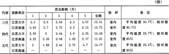 大田作物随机取样,采用黏虫兜、塑料薄膜等捕查,每块田不少于5m2。调查杂草用方瓷盘,调查面积不少于2m2。每次将查获虫数分龄记载,统计每公顷虫量和各龄虫比率。结果记入表5-43。 表5-43 一代虫量和发育进度调查记载表